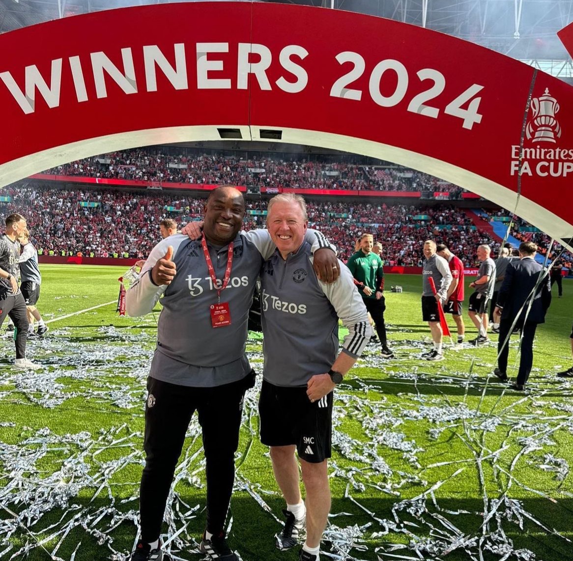 Still in the 18 Area, Benni McCarthy is now an FA Cup Winning Coach with Manchester United after the Red Devils against the odds beat their derby rivals and the bookmakers favourites to win the trophy, Manchester City 2-1 on Saturday 15 May 2024.