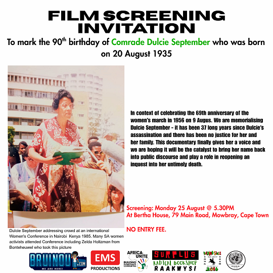 Honouring the Revolutionary Dulcie September with a Free Film Screening, Discussion and Activism as We Reclaim Her Legacy and Reignite the Call for Justice This Women’s Month
