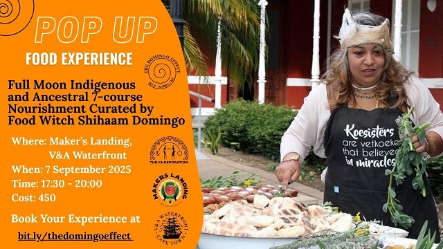 The Full Moon Indigenous Food Story will be hosted by The Domingo Effect on Sunday, 7 September, from 17H30 to 20H00 at Makers Landing, The Cruise Terminal, Victoria & Alfred Waterfront, Cape Town