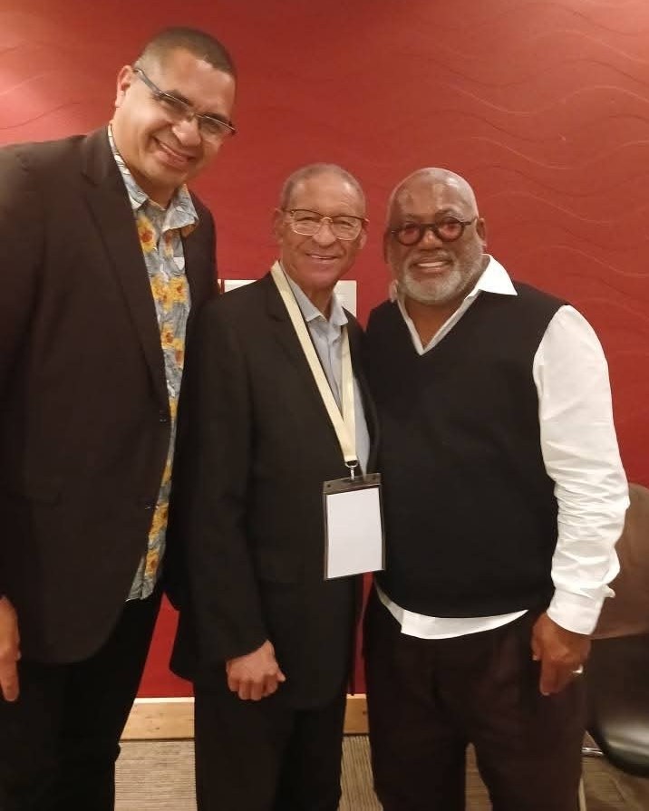 Dr Jerome Samuels(L) and Anti-Apartheid liberation struggle leader Dr Alan Boesak(M) with Dr Jonathan Butler (R) at the Tribute Show, A Life in Song – Photo Dr Jerome Samuels.