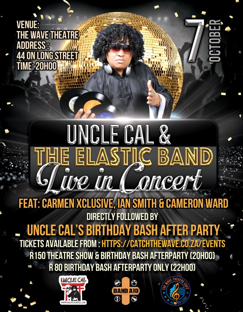 The Wave Theatre at 44 Long Street Cape Town presents Uncle Cal & The Elastic Band Live followed by Uncle Caal’s Birthday Bash Afterparty on Saturday 7 October 2023 starting at 8pm.